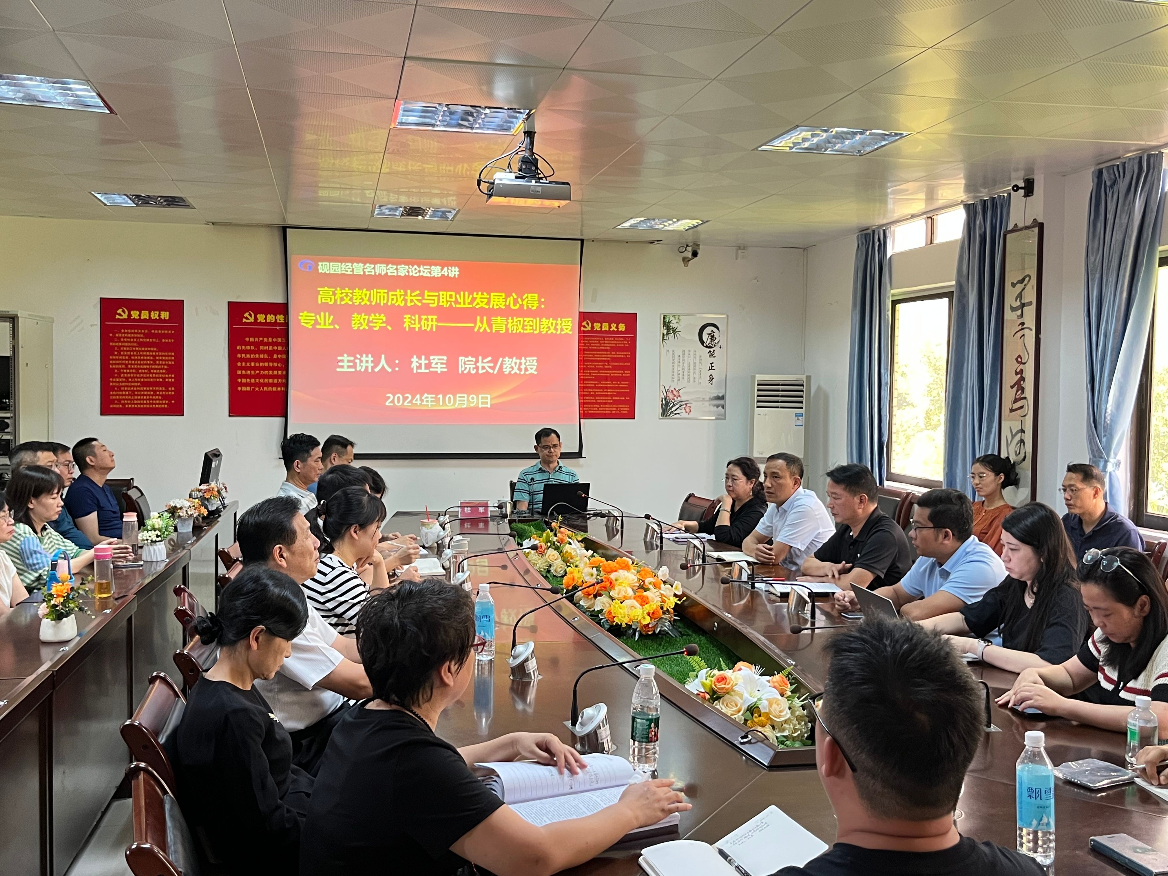 2024年10月9日下午,英国威廉集团官网“砚园经管名师名家论坛(第4讲)”在公司501会议室成功举办。根据公司2024年师德建设主题教育月工作部署和论坛年度安排,为全面提升全体教师爱岗敬业、进取作为、争先创优的行动力和精气神,持续推动公司公司产品和科学研究高质量发展,公司特邀广东海洋大学管理公司经理杜军教授来校作题为《高校教师成长与职业发展心得:专业、教学、科研——从青椒到教授》的专题报告会。公司党委书记梁标、经理李华军以及40名中青年骨干教师参加了报告会,会议由梁标主持。