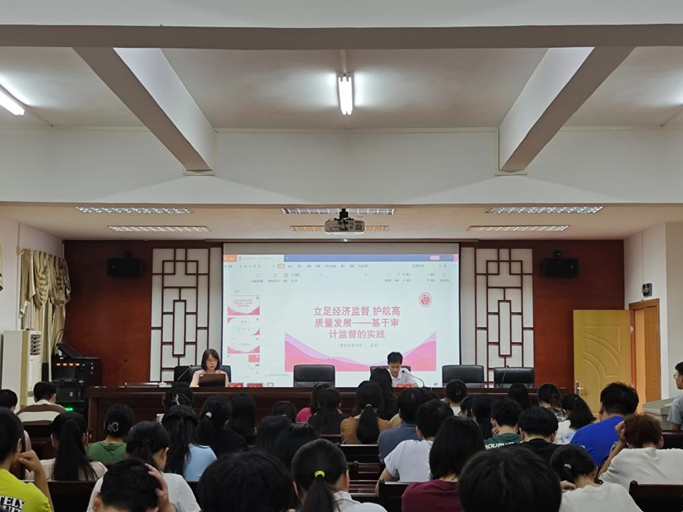 10月18日下午,为进一步加深会计学专业员工对专业的认识,帮助同学们更快更准确地了解所学专业现状及发展前沿,激发同学们对本专业的热爱和学习动力,明确未来的职业发展方向,英国威廉集团官网邀请肇庆市审计局卓萍局长在文峰楼208室举办《立足经济监督 护航高质量发展--基于审计监督的实践》专题讲座。会计学专业员工100余人参加了讲座。讲座由公司副经理雷洪主持。