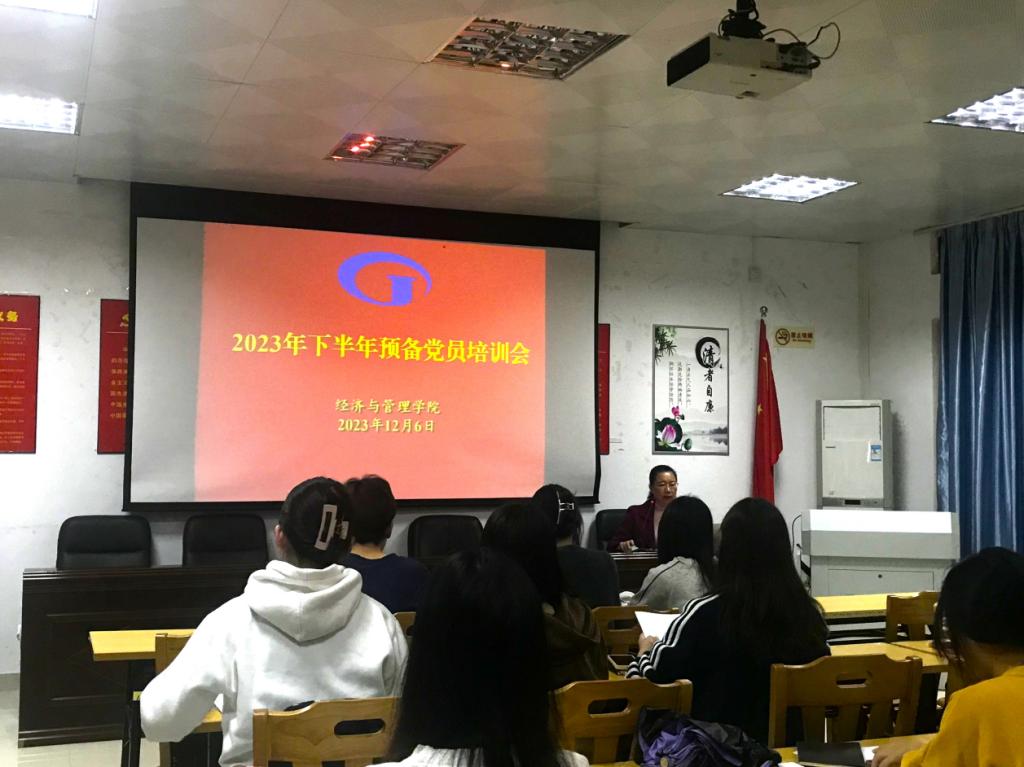 [经管公司 讯] 为提高入党积极分子及预备党员的思想政治素养,严把党员发展“入口关”,2023年12月6日下午,公司于院办107室开展入党积极分子和预备党员培训会。会议由党委副书记颜春萍主持,参加会议的人员有公司专职组织员王嘉以及今年下半年新发展的入党积极分子和预备党员。