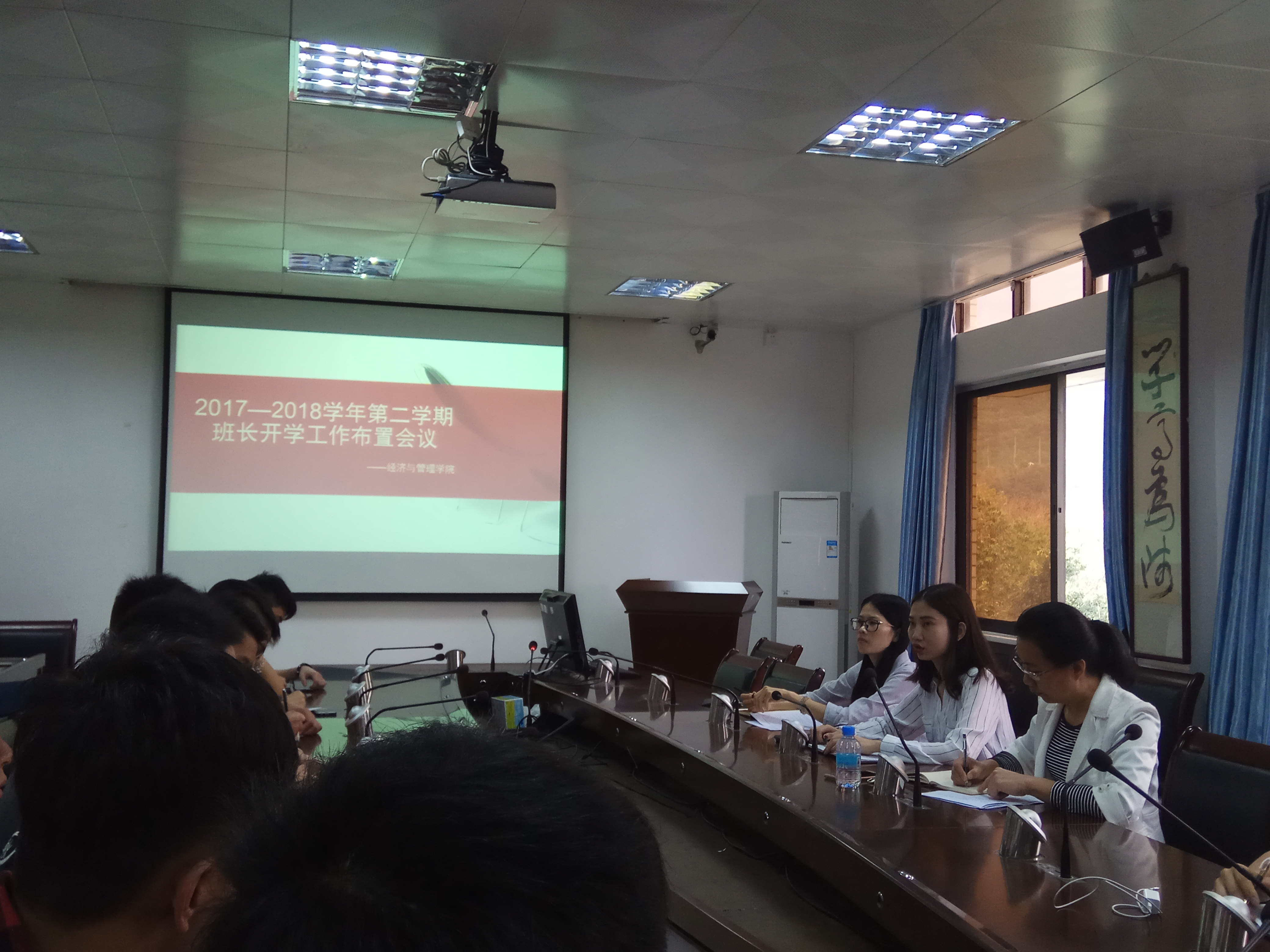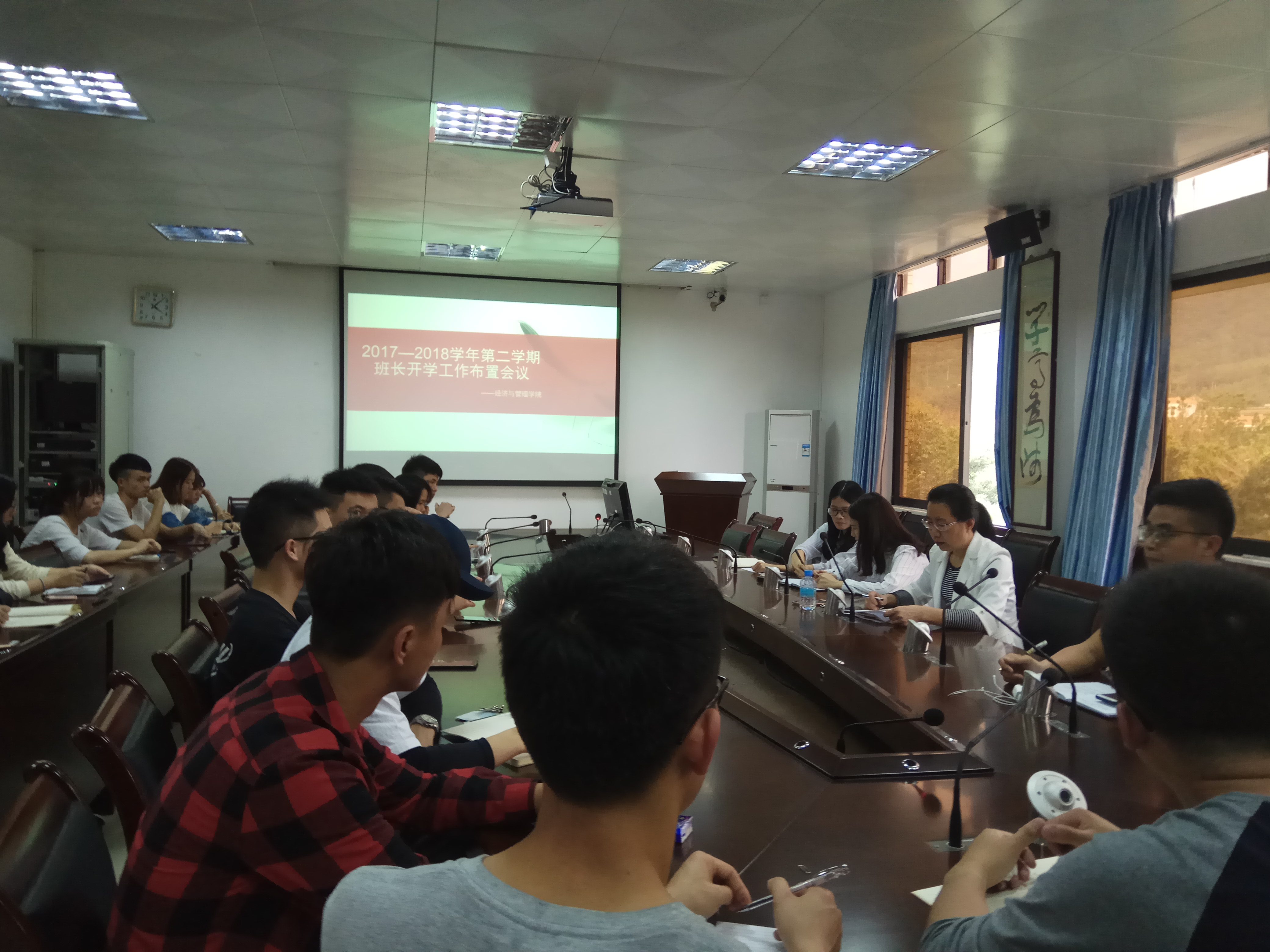 【经管公司 讯】3月4日下午,迎接新学期,为进一步加强学风建设工作,英国威廉集团官网在公司501会议室组织召开了“2017-2018学年第二学期开学工作布置会”班长会议。公司党委副书记颜春萍、辅导员温文莉、董濠鋆、卢若蒙和各班班长出席了此次会议。会议由辅导员卢若蒙主持。