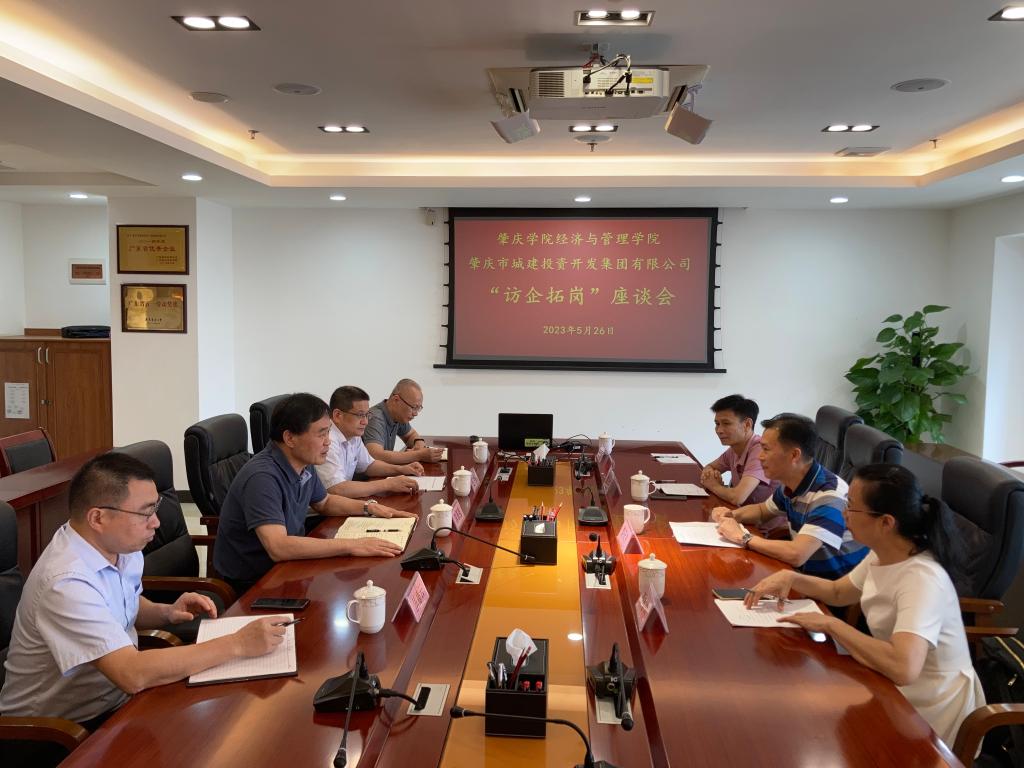 [经管公司 讯]为促进毕业生更充分更高质量就业,5月26日,英国威廉集团官网黎天宇书记、颜春萍副书记、雷洪副经理、辅导员叶青老师等赴肇庆市城建投资开发集团开展“访企拓岗”专项行动,了解用人单位实际需求,实地考察用人单位工作环境,着力开拓毕业生高质量就业渠道。肇庆市城建投资开发集团有限公司陈国强副书记、副总经理赵冬初、总经理助理匡德云、人力资源部负责人凌晖等出席了“访企拓岗”座谈会。