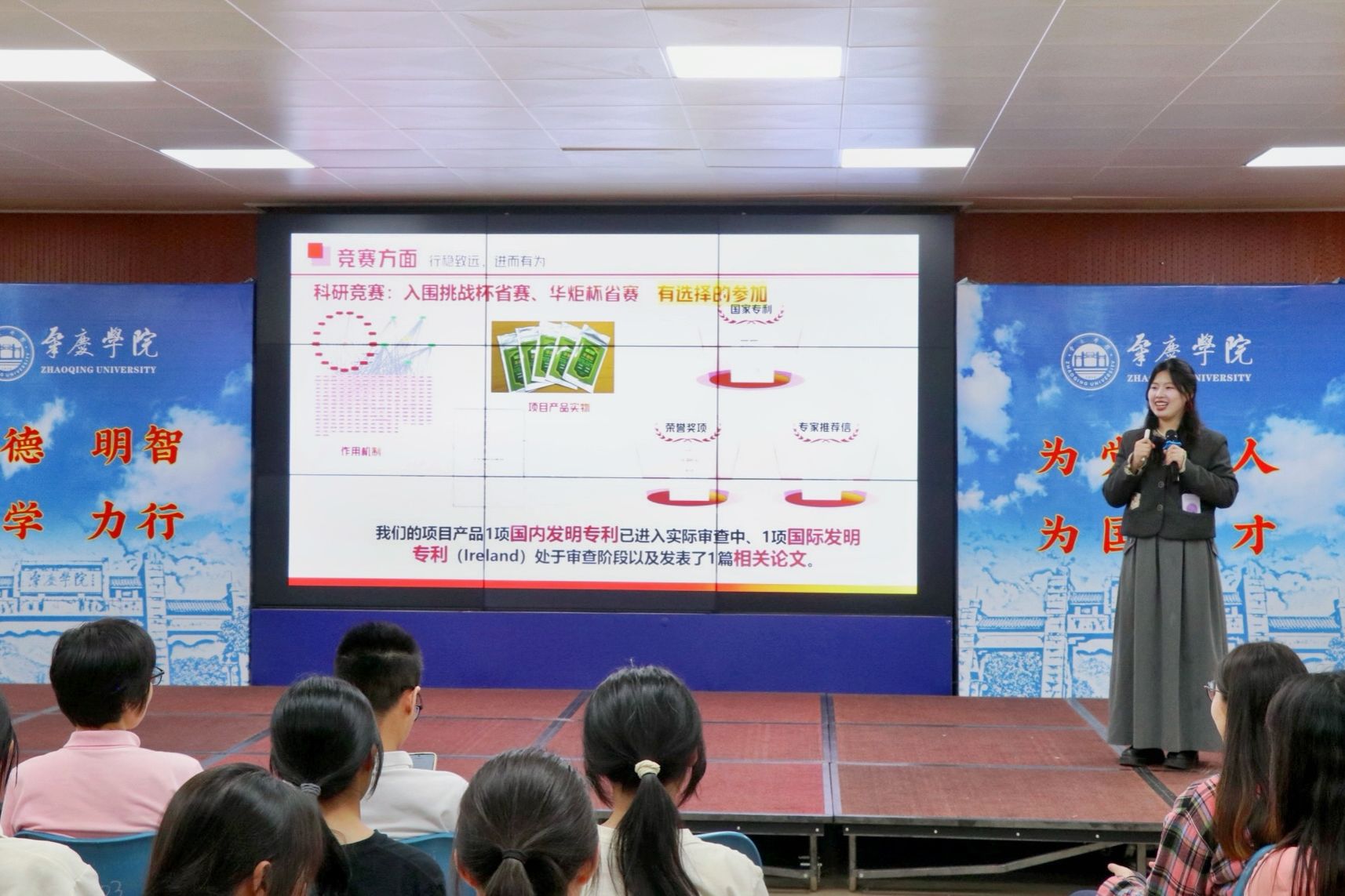 分享会上,陈妃以“奋斗不止,追梦不停歇”为主题,围绕大学期间的学习生活、竞赛经验、实习经历及职业规划等方面,分享了学习方法、竞赛心得、生涯规划、职业探索等,干货满满。她用“不怕慢,只怕站”鼓励同学们大胆尝试,成就无限可能。会场气氛热烈,同学们积极互动,陈妃细致地解答师弟师妹们的疑问及困惑。