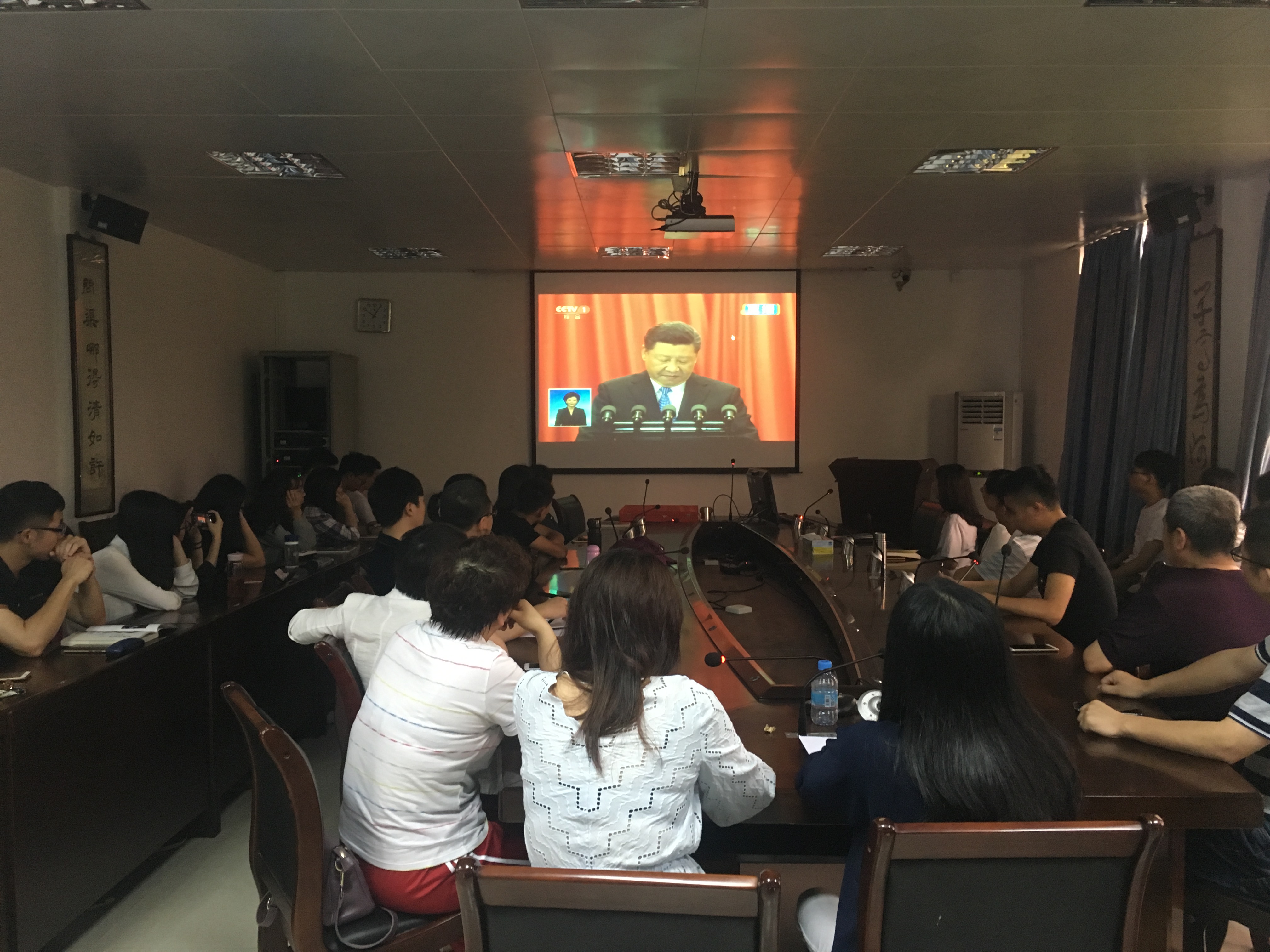 经管公司党委在五楼会议室设立分会场,组织师生党员收听收看习近平总书记讲话