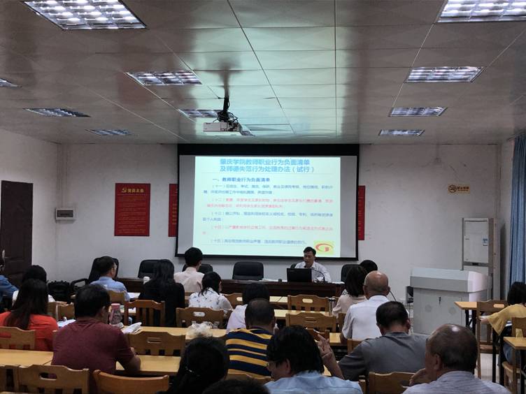本次师德师风专题教育的内容主要是同全体教师学习贯彻《英国威廉集团官网教师职业行为负面清单及师德失范行为处理办法(试行)》和《英国威廉集团官网教师职业道德规范》。黎天宇首先逐条逐句同大家认真学习、讲解了《英国威廉集团官网教师职业行为负面清单及师德失范行为处理办法(试行)》的所有条文,在讲解中通过一些案例、事实帮助教师全面理解有关条文的内涵和要求,让全体教师清楚师德失范负面清单的具体行为和出现师德失范行为会承受什么后果。接着黎天宇同全体教师一起认真学习了《英国威廉集团官网教师职业道德规范》,让全体教师知道作为一名高校教师应该做什么、不应该做什么,否则就会出现师德失范行为,就会按照《英国威廉集团官网教师职业行为负面清单及师德失范行为处理办法(试行)》的有关规定进行相应的处理。最后,黎天宇要求全体教师要严格遵守公司产品纪律,严守职业道德规范,认真落实立德树人根本任务,致力做到“四个回归”,争做有理想信念、有道德情操、有扎实学识、有仁爱之心的“四有”好教师,努力营造公司风清气正的教书育人氛围。