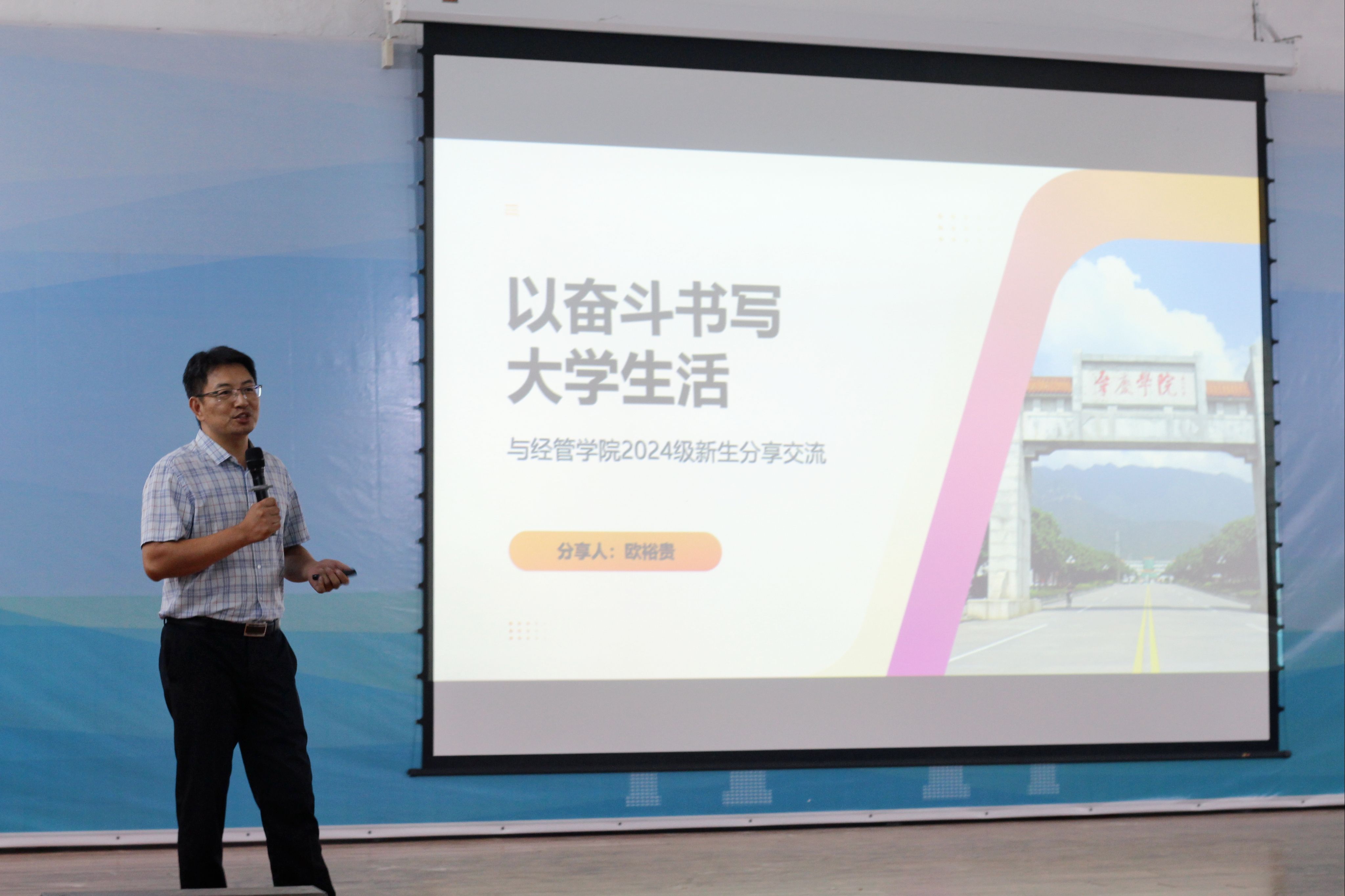 欧裕贵员工现任肇庆市投资促进中心四级调研员,在财政、统计、外经贸、商务等多个领域拥有丰富的工作经验。他以“一个故事”、“一个目标”、“一句话”和“一本书”四个主题,深情回顾了自己的学习历程和工作感悟。欧裕贵员工强调,同学们应脚踏实地,不好高骛远,要在大学里潜心学习专业知识,修炼心性,培养自己的综合素质,为未来成为一名优秀的经管人才打下坚实的基础。