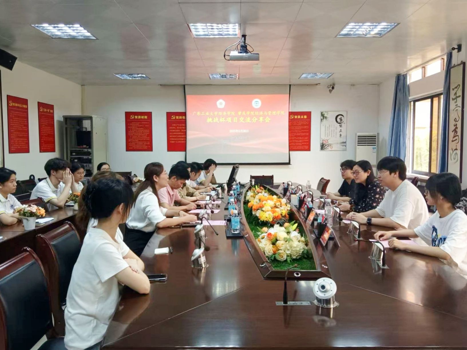 【经管公司 讯】3月28日,在广东工业大学“项目式”帮扶工作队成员刘威副教授引荐下,广工经济公司团委书记刘惠、项目负责人关千浩带领“挑战杯”项目团队,受邀来院参加“经管公司挑战杯项目备赛工作研讨交流会”,指导经管公司挑战杯参赛作品深度打磨工作。经管公司经理李华军、党委副书记巫燕娜、副经理雷洪、团委书记温文莉以及公司挑战杯培育项目指导老师、项目负责人出席会议。
