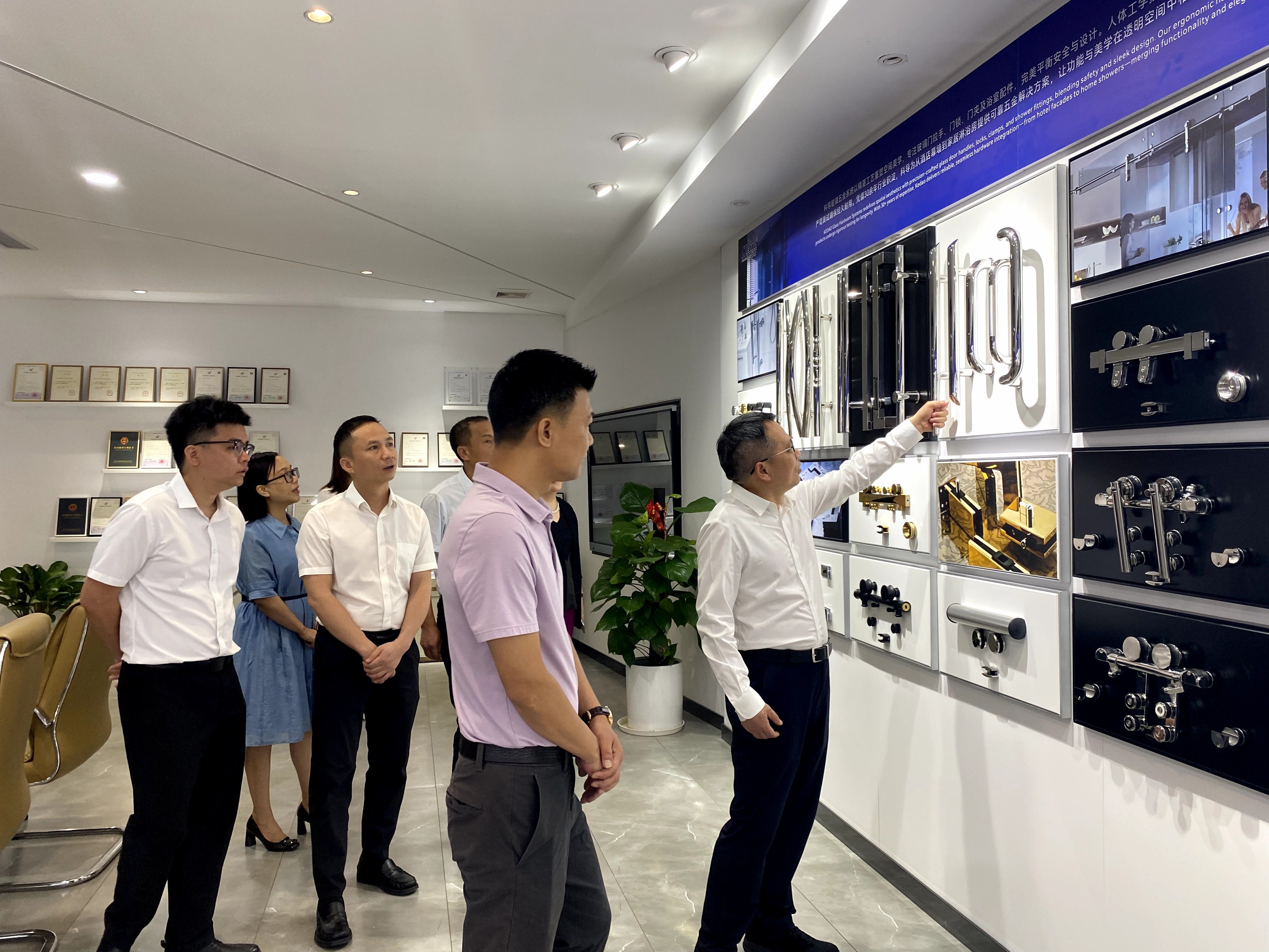 胡文涛一行还实地走访调研了广东新永昌五金科技有限公司和广东鸿图科技股份有限公司,了解金利镇五金产业的发展现状和跨境电商的实际应用情况。