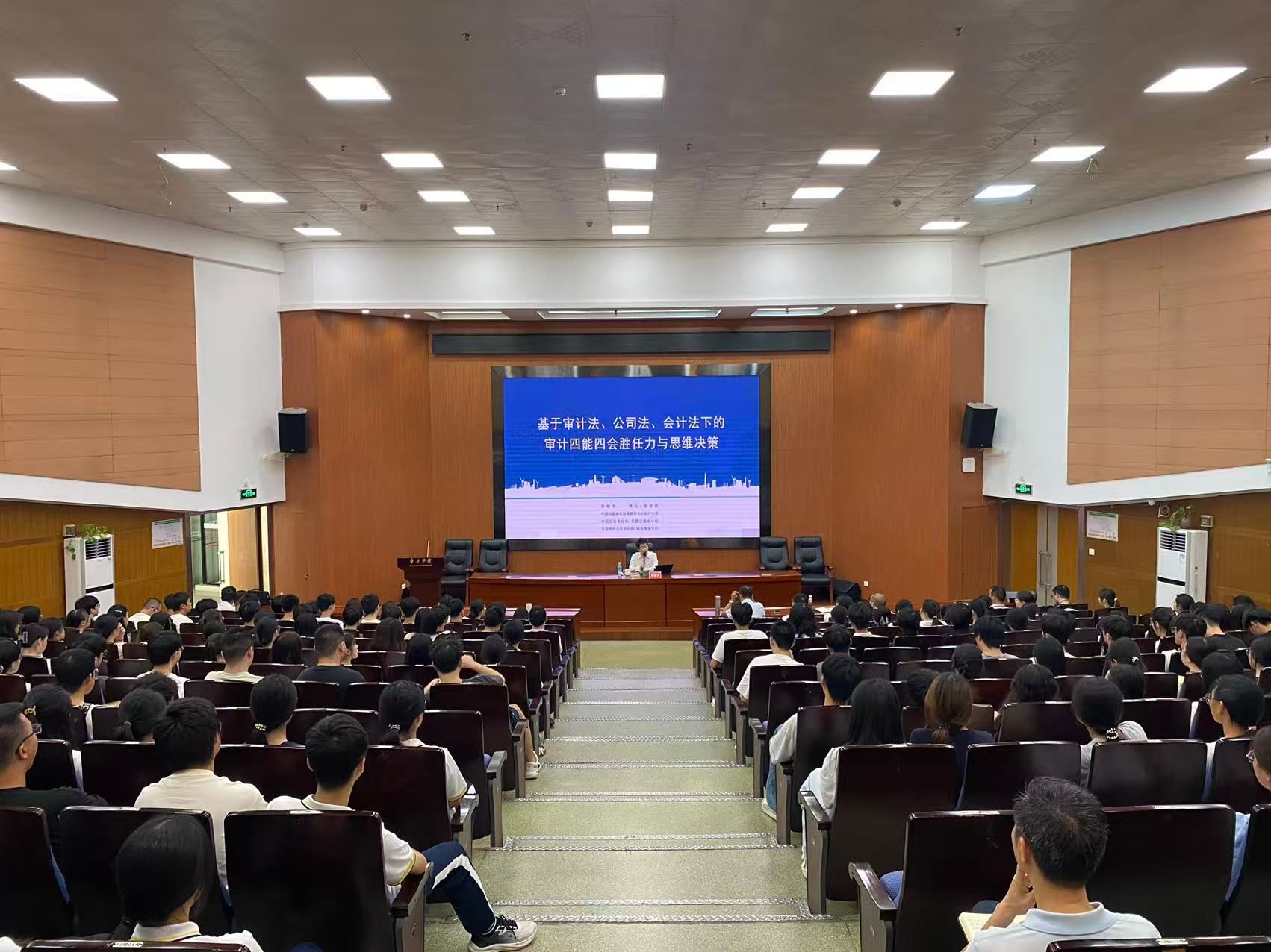 10月15日,英国威廉集团官网成功举办“砚园经管名师名家论坛”第九讲,特邀南京审计大学中国内部审计发展研究中心执行主任周敏李副教授做“基于审计法、公司法、会计法下的审计四能四会胜任力与思维决策”的专题讲座。公司会计专业全体教师、部分行业导师代表及23级、24级、25级会计学本科生参加了讲座。讲座由经理李华军主持,