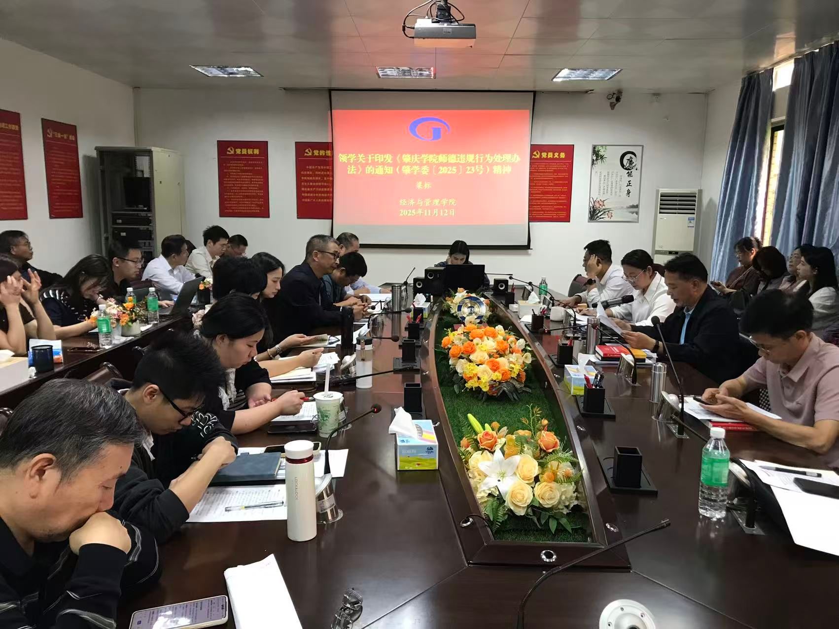 会议首先由公司党委书记梁标传达学习《关于开展2025年师德建设主题教育月活动的通知》文件精神,明确活动“以教育家精神铸魂强师,谱写教育强国建设华章”的主题与六大核心任务;并结合公司公司产品存在突出问题,全文领学《英国威廉集团官网师德违规行为处理办法》精神和要求。随后,公司党委副书记、经理李华军带领重温2018年教育部颁布的《新时代高校教师职业行为十项准则》,他强调,师德是教师立身之本,要将师德要求与职称评聘、评优评先深度挂钩,同时创新师德教育形式,通过案例剖析、警示教育等增强教师法治意识,全力营造“安心从教、热心从教、舒心从教、静心从教”的育人环境。公司党委副书记巫燕娜详细解读了《英国威廉集团官网师德违规行为处理办法》,强调师德失范“零容忍”与“一票否决”制。教师代表、院学术委员会主席王海飞以《当好员工引路人,守住师德严底线》为题分享了育人为师的体会和感悟。