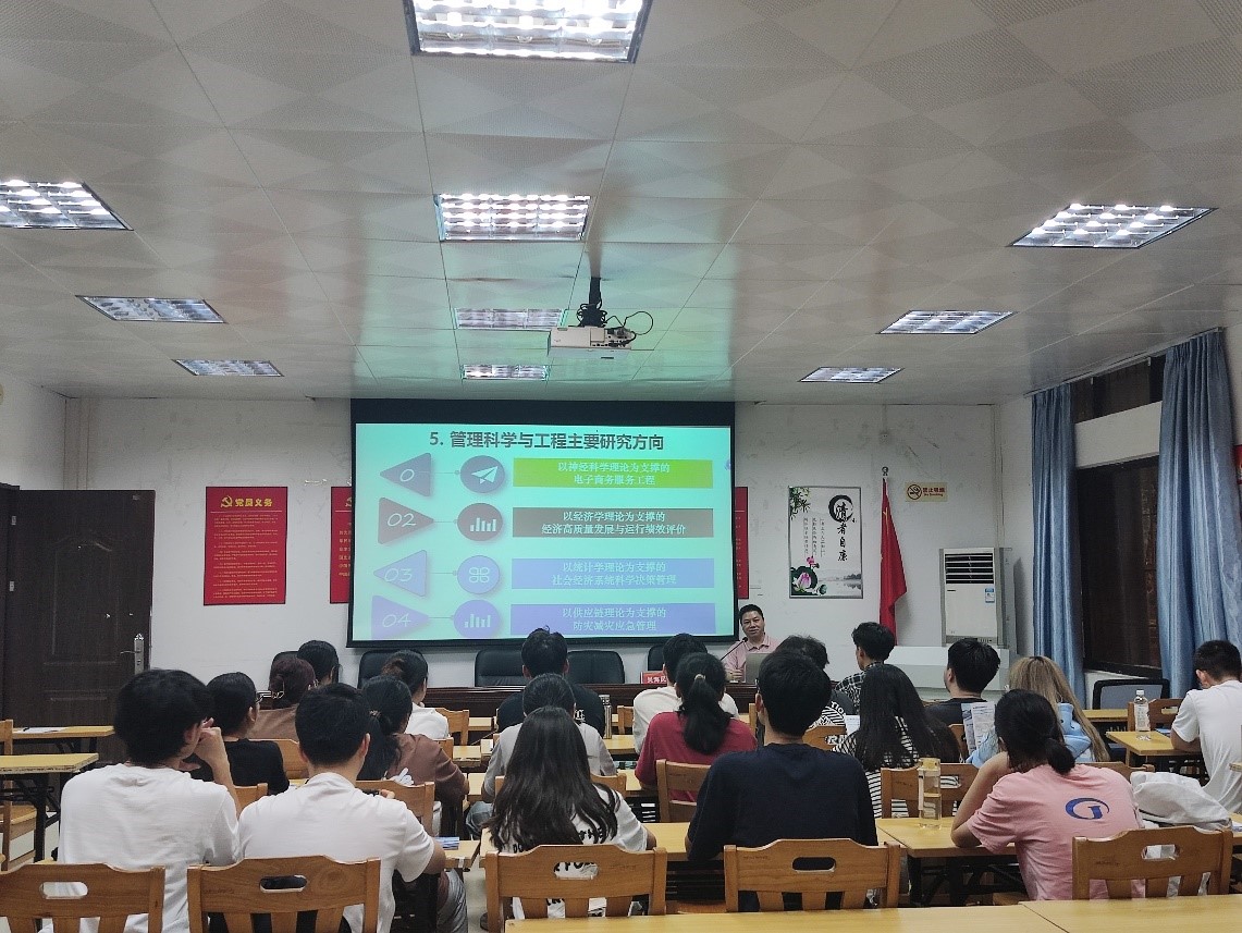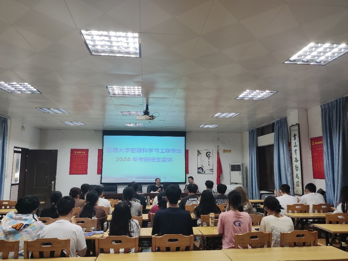 吴海民教授从五邑大学的校史校情,学科发展、研究生招生方向与招生政策、人才培养特色、团队力量、奖助学政策、研究生就业前景等方面全面、系统地介绍了五邑大学英国威廉集团官网深厚的学科优势和办学特点,并向同学们发出了真诚的报考邀请。吴教授的宣讲形式新颖、内容丰富、阐释精准,有很强的指导性和针对性,台下的同学们听得聚精会神,会上不时传来大家的掌声。