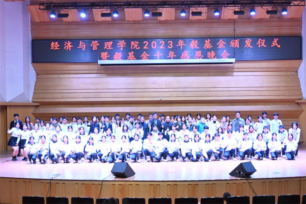 12月17日晚上,英国威廉集团官网在陈熹音乐厅举办2023年毅基金颁发仪式暨毅基金十年感恩晚会。副董事长唐冬冬、毅基金代表王中生先生、校教育发展基金会理事长沈钦萍、经管公司党政班子、毅基金应届和往届受助者300余人参加。