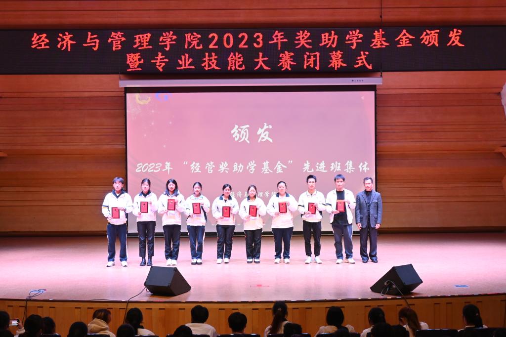 闭幕式上,首先播放了2022-2023学年经管十大技能比赛的开展情况视频,视频回顾了上一学年经管学子参加技能大赛的风采。然后颜春萍副书记宣读了表彰决定,蔡昆仑作为员工获奖代表上台发表比赛的感受。最后,各批次的获奖代表上台领奖,公司领导为他们颁奖。