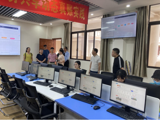 参观过程中,刘玉勋经理介绍了财经政法公司实验教师团队及实验室分布情况,并实地详细介绍了各实验室的功能及设备使用情况。考察队伍一行对实验室面积、课程设置、实验室利用率、学时学分、团队队伍等方面的内容进行了详细的询问和了解,双方还就产业公司建设、实训教学、实验室建设和管理进行了深度的交流。