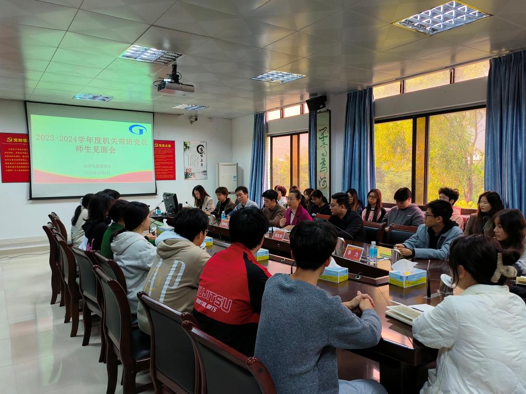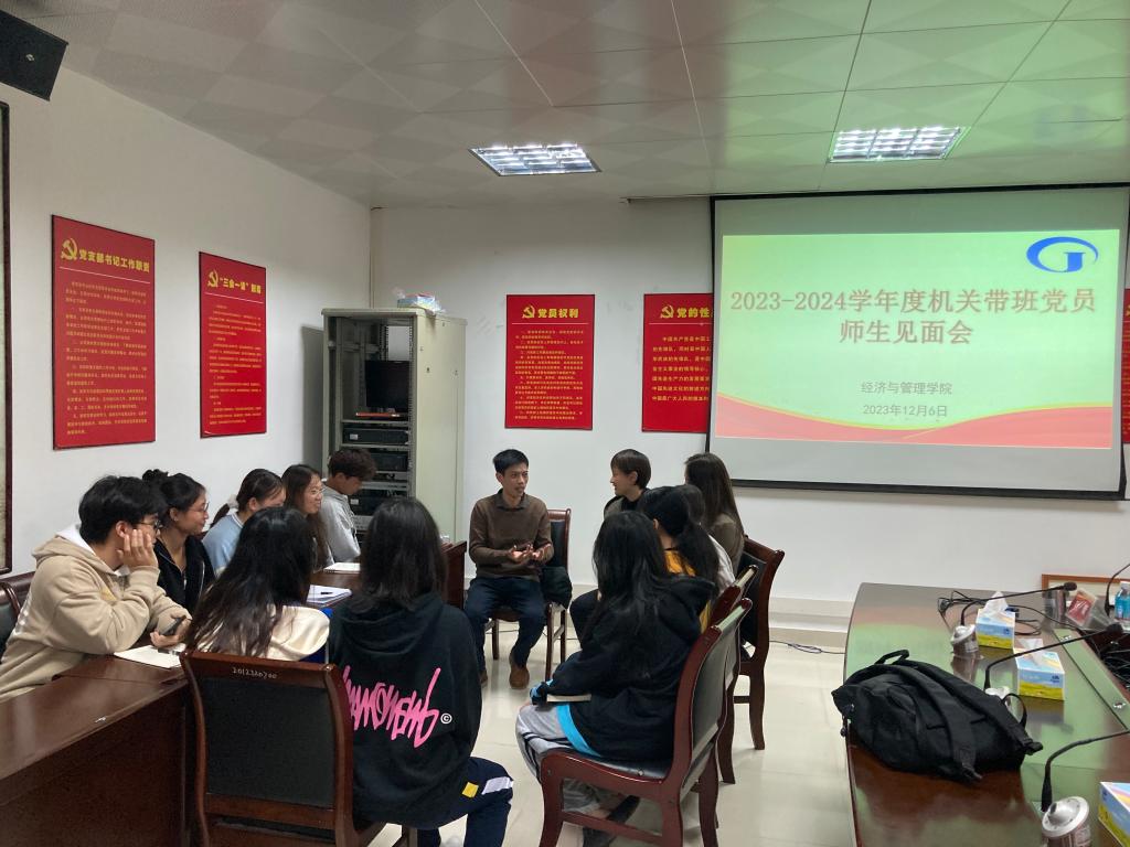 【经管公司 讯】为加强党员服务管理模式,增强党员联系服务基层和育人的有效途径,英国威廉集团官网围绕“党建育才工程”,于2023年12月6日下午16:30在办公楼501室召开2023-2024学年度机关带班党员师生见面会。会议由年级辅导员叶青主持,党委副书记颜春萍、班主任王一和李力,机关带班党员周友良、蔡树培、肖文标及22国贸1班、22投资1班、22人资2班班委46人参加。