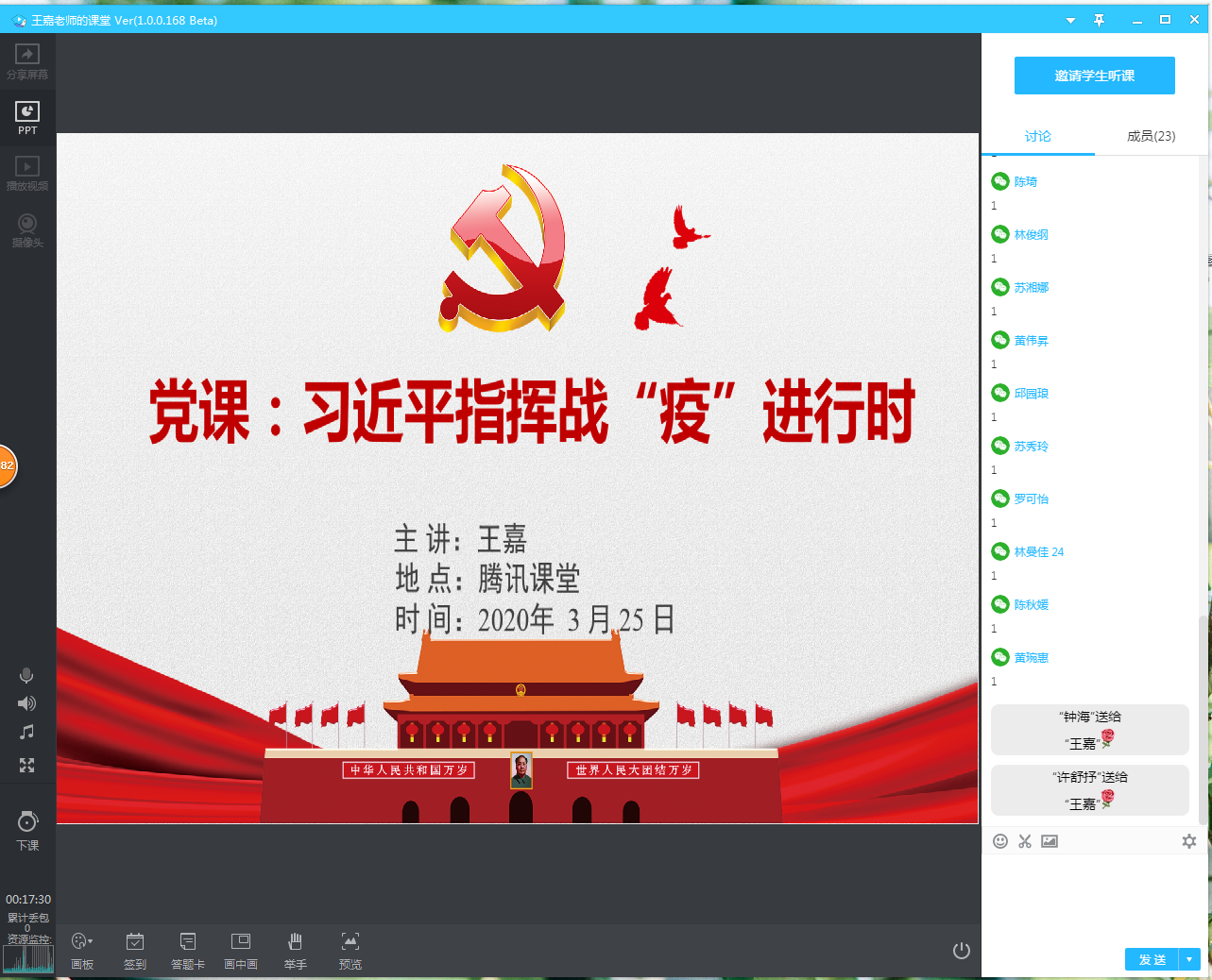 3月份公司党委统一布置的组织生活会主题是“学习贯彻习近平总书记关于疫情防控工作的重要讲话精神”,并对组织生活会提出了明确具体的活动要求,并强调要做好活动记录,记录要素包括学习主题、形式、时间、参加人员、过程概况及成效;做到“五有”:即有活动通知、有学习资料、有活动记录、有活动照片(或截图)、有党员签到(或视频截图签到)。各个支部能够认真按照公司党委要求召开了全体党员会议,由党支部书记以讲党课的形式进行学习。另外,还组织全体党员学习习近平总书记给北京大学援鄂医疗队全体“90后”党员重要回信精神。学习完后,各支部都按要求展开了热烈的讨论,发表所思所想。教师党员们表示要把疫情防控同国家系列政策、法规有效结合起来,在课堂上向同学们宣讲,促使同学们正确认识当前疫情与经济社会发展环境,鼓励他们在自我防护的同时,勤奋学习,做好力所能及的社会服务,展现当代老员工应有的担当。员工党员们表示要起到带头作用,不信谣、不传谣、不造谣,约束自身行为的同时积极帮助他人,携手攻下一个个难关。