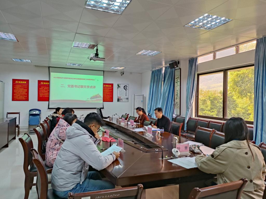 黎天宇书记分别对各支部的工作总结一一作了点评。黎书记对各支部书记能够把一年来抓基层党建工作的主要情况、存在的问题进行了认真总结和反思作了充分的肯定,同时对各支部存在的问题提出了几点要求:一是要进一步针对2021年党建工作存在的问题进行认真剖析,深入分析存在问题的原因,提出有效的整改措施;二是坚持“三会一课”制度,提高“三会一课”质量,切实发挥“三会一课”制度的重要作用;三是要深化学习政治理论知识,提高自己的党性修养和政治理论水平;四是建立党史学习教育常态化、长效化制度机制,不断巩固拓展党史学习教育成果;五是以“一支部一品牌”建设为抓手,全面提升基层党建的质量;六是强化政治功能、推动自我革新,将党支部打造成为宣传党的主张、贯彻党的决定、团结动员群众、推动改革发展的坚强战斗堡垒。