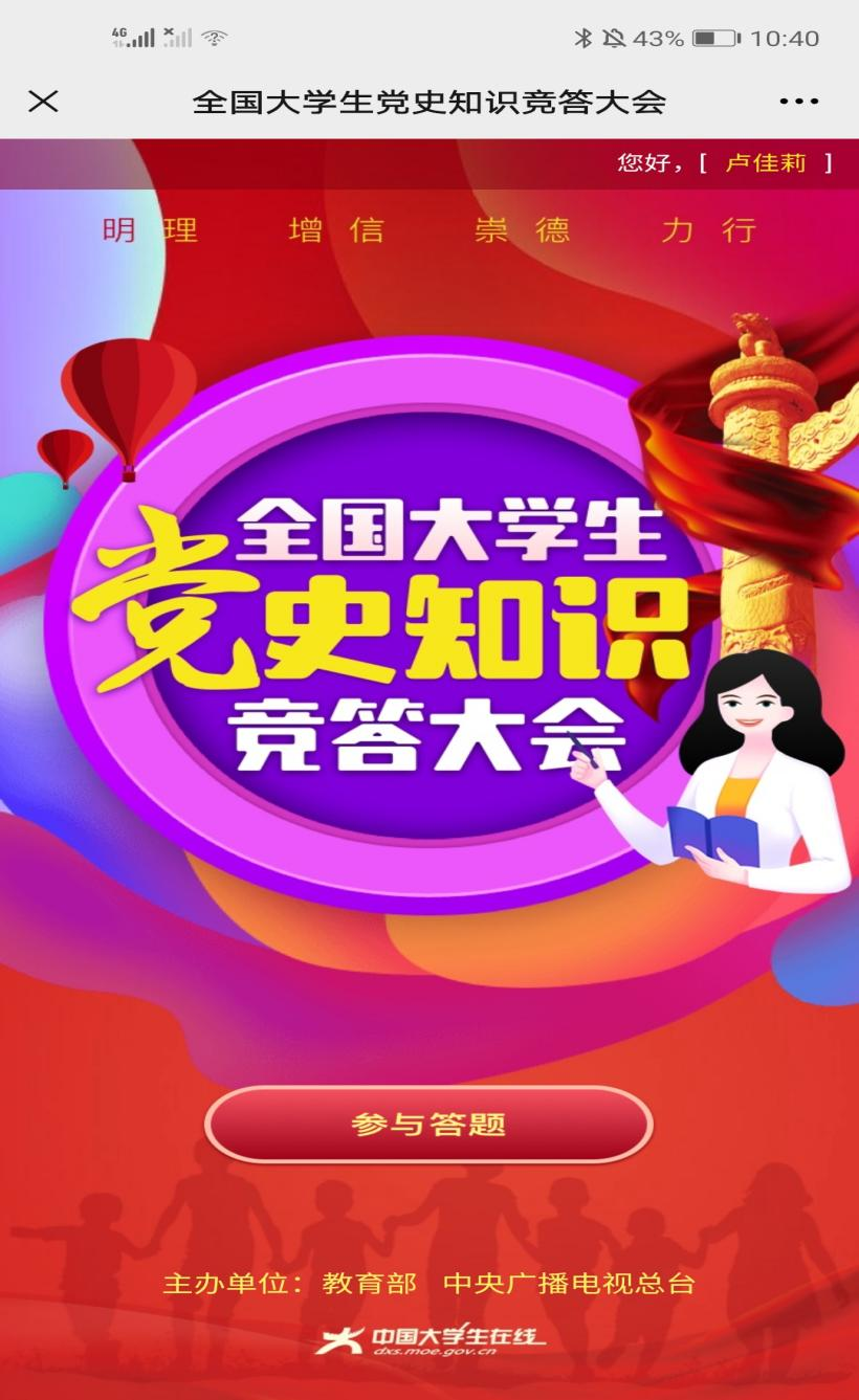 [经管公司 讯]为庆祝中国共产党百年华诞,深入学习贯彻习近平总书记在党史学习教育动员大会上的重要讲话精神,英国威廉集团官网员工等三百余人于2021年3月22日至4月14日积极参与了由教育部、国家语委、中央广播电视总台联合开展的《全国老员工党史知识竞答大会》活动。