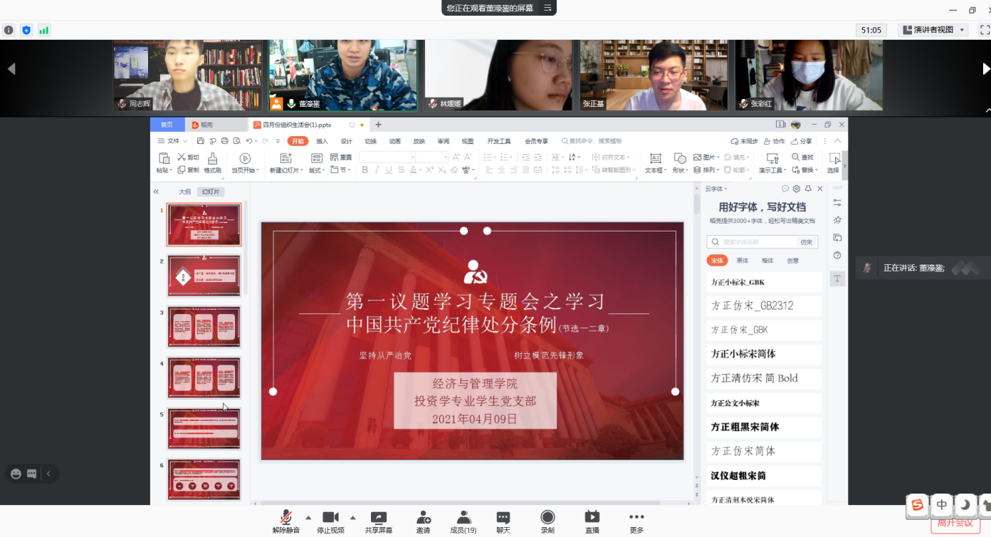 4月份投资学专业员工党支部学习《中国共产党纪律处分条例》