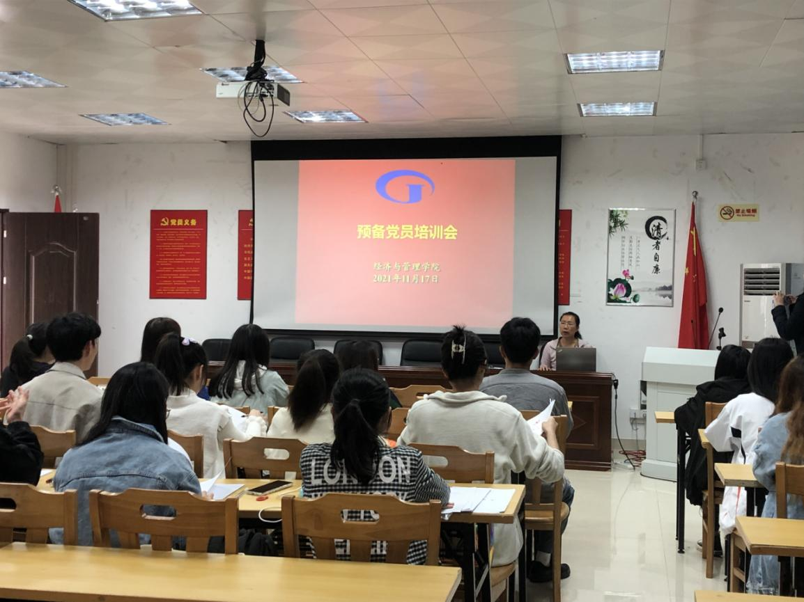 [经管公司 讯]为全面贯彻习近平总书记在庆祝中国共产党成立100周年大会上的重要讲话和党的十九大、十九届二中、三中、四中、五中、六中全会精神,严把党员发展“入口关”,确保党员质量。经济与管理公司党委于2021年11月17日中午在院办107室开展党员发展对象和入党积极分子培训大会,培训主讲人为公司党委副书记颜春萍,参会人员有协助党建工作的叶青老师、各支部支委及2021年下半年发展对象和积极分子共101人。