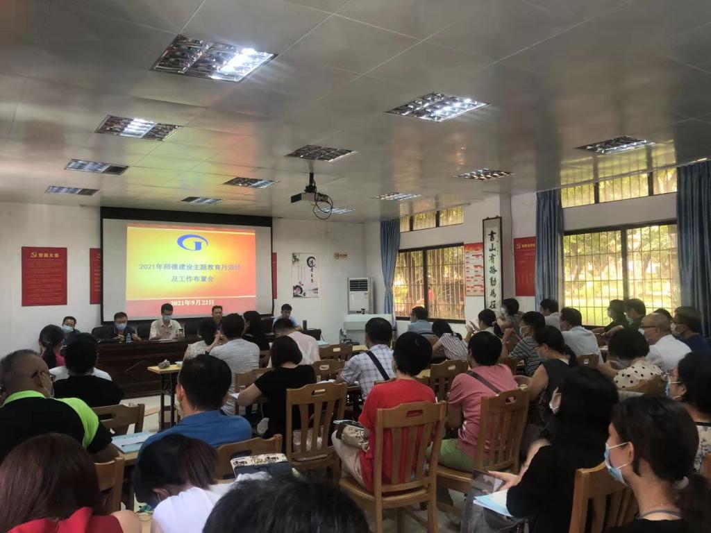 [经管公司 讯]为进一步加强和改进新时代师德师风建设,全面提升公司广大教职员工的思想政治素质和职业道德水平,努力造就一支师德高尚、业务精湛、结构合理、充满活力的高素质专业化创新型教师队伍,根据《广东省教育厅关于开展2021年师德建设主题教育月活动的通知》和《英国威廉集团官网2021年师德建设主题教育月活动方案》有关要求,公司党委于9月22日下午在107会议室召开了2021年师德建设主题教育月动员及工作布置会。会议由公司党委书记黎天宇主持,公司教师约70人参加了会议。