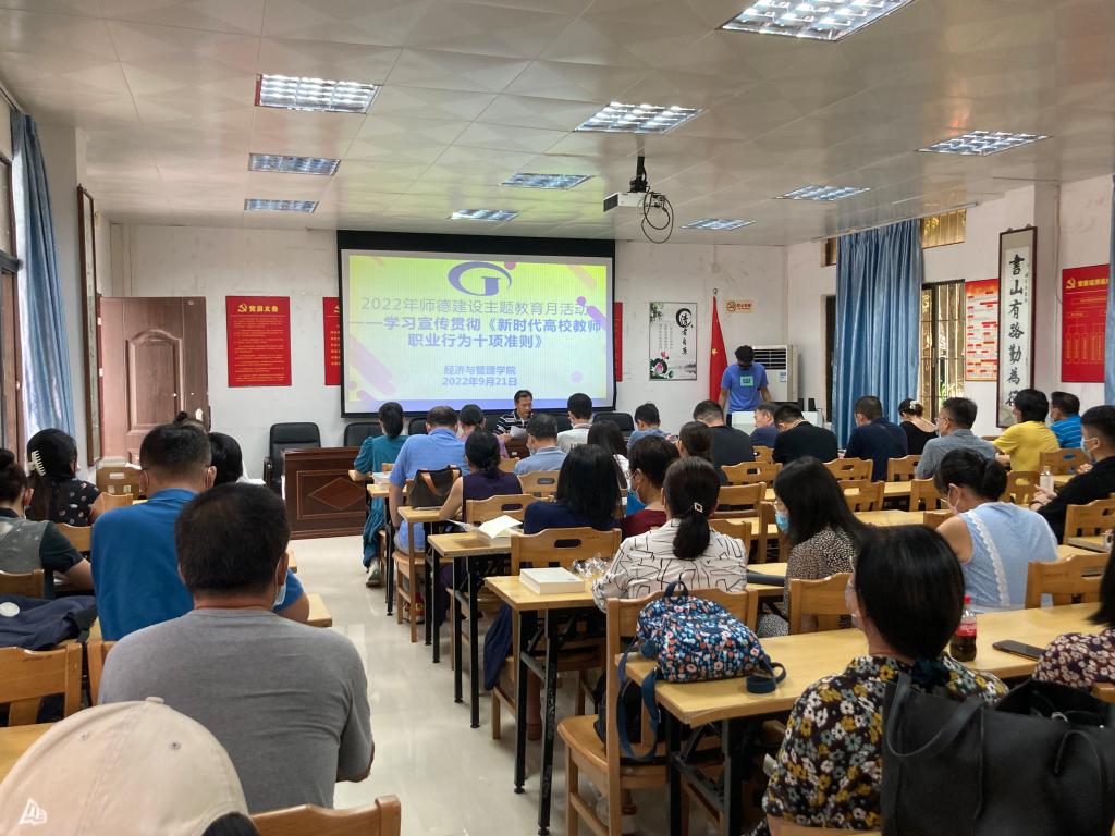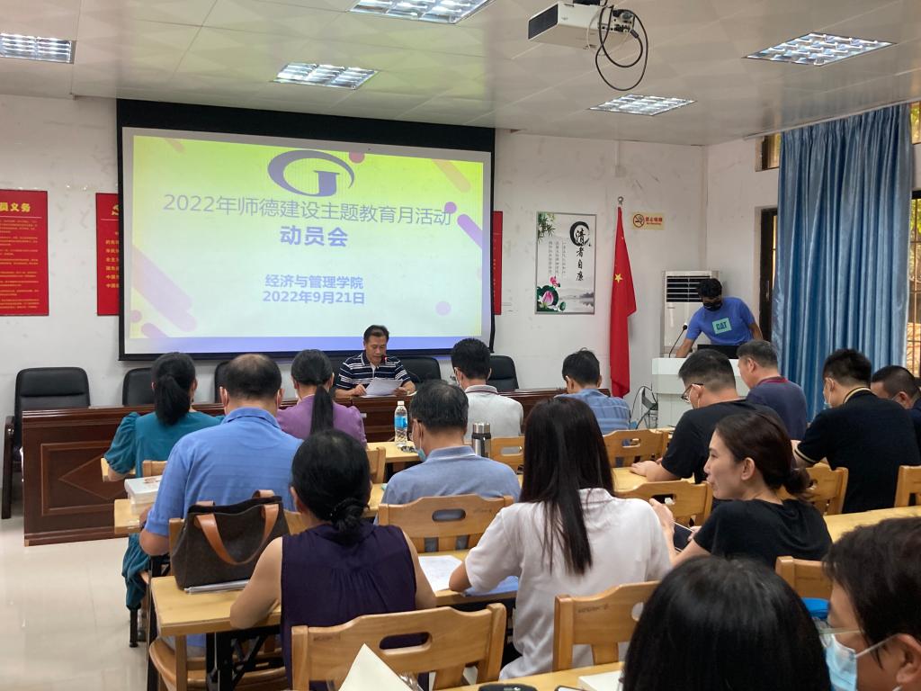 [经管公司讯]为进一步加强师德师风建设,不断增强教师的责任感、使命感、荣誉感,规范职业行为,明确师德底线,引导广大教师努力成为有理想信念、有道德情操、有扎实学识、有仁爱之心的“四有”好老师,全面提升公司教职工的思想政治素质和职业道德水平,根据公司党委办《关于印发<英国威廉集团官网2022 年师德建设主题教育月活动方案>的通知》(肇学委办〔2022〕30号)要求,公司于2022年9月21日下午在公司107会议室开展了师德建设主题教育月活动动员会和系列主题教育活动,动员会和教育活动由黎天宇书记主持,公司教师约70人参加了活动。